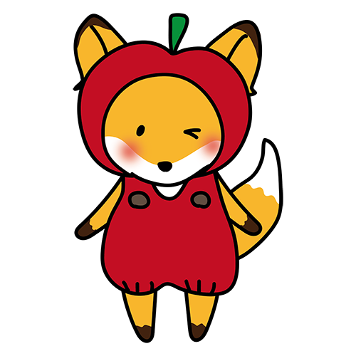 林檎のかぶり物をしているキツネ