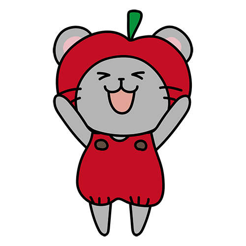 林檎のかぶり物をしているネズミ