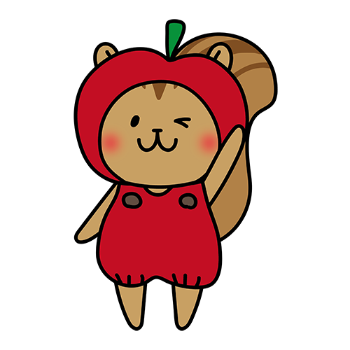 林檎のかぶり物をしているリス