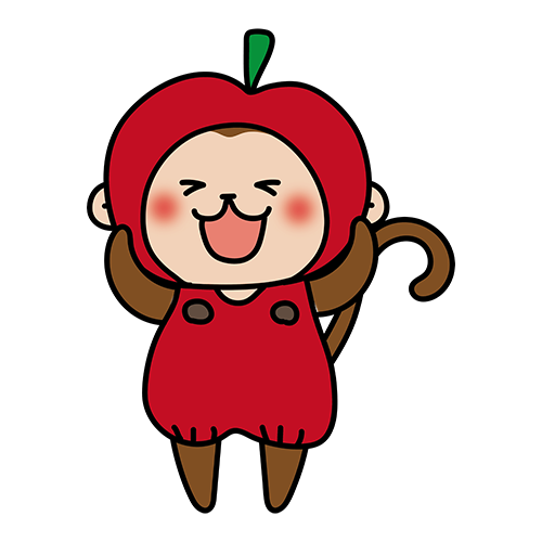 林檎のかぶり物をしている猿