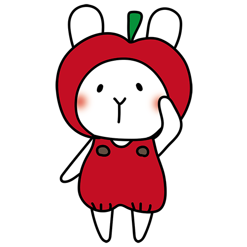 林檎のかぶり物をしている白いうさぎ
