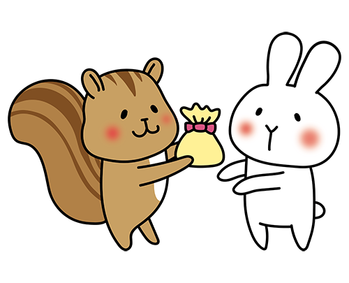 リスにプレゼントを渡す白いうさぎ