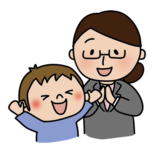 男の子を褒める眼鏡をかけた女性教師