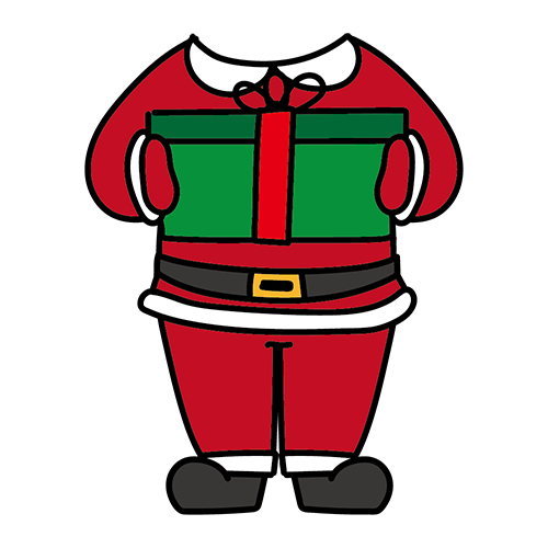 【顔はめ】プレゼントを持っているサンタさんの洋服 【顔はめ】シリーズは手持ちの写真に重ねてお使いいただくイラストです。「○○を無料でダウンロード」ボタンからダウンロードしていただくことで、sample写真の部分が透明になります。