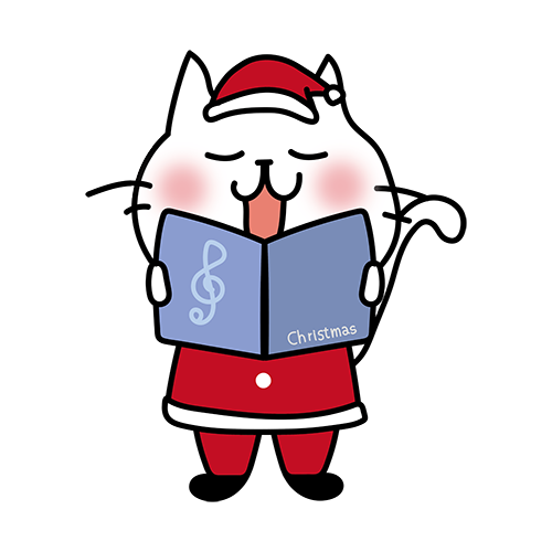 クリスマスに歌をうたっている白い猫