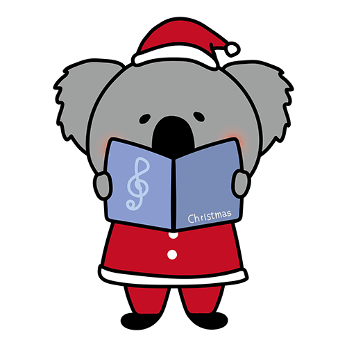 クリスマスに歌をうたっているコアラ