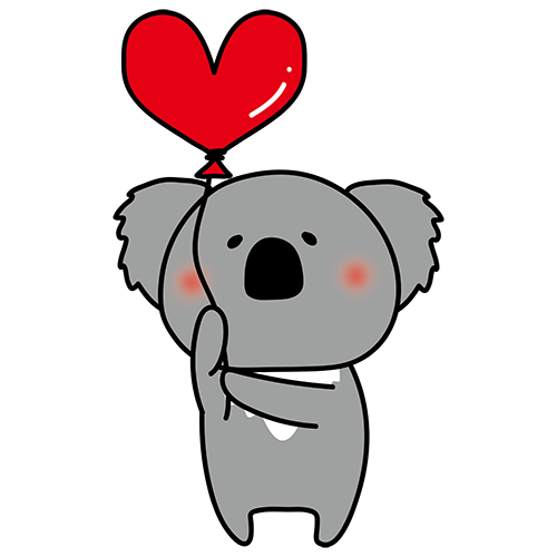 ハートの風船を持っているコアラ