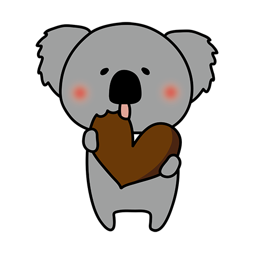 バレンタインのチョコレートを食べるコアラ