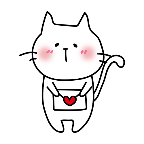 照れながらラブレターを渡す白い猫