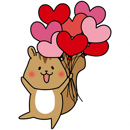 ハートの赤い風船の束を持っているリス