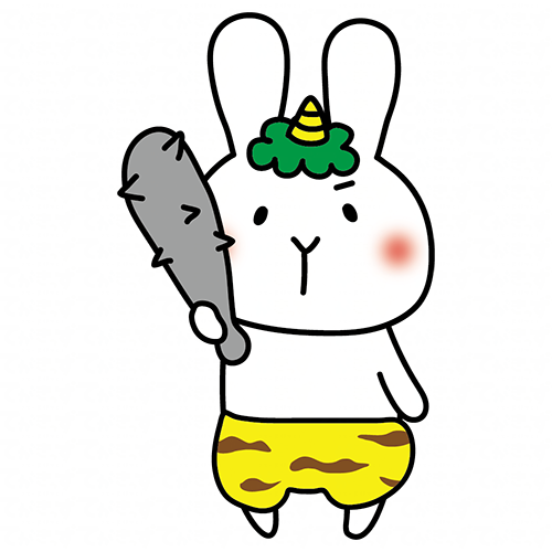 金棒を持っている青鬼の格好をしている白いうさぎ
