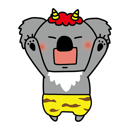 ガォーと脅かしている赤鬼の格好をしたコアラ