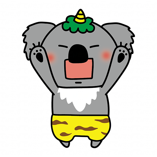 ガォーと脅かしている青鬼の格好をしたコアラ