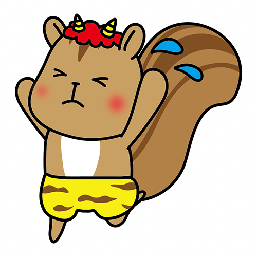 ガォーと脅かしている赤鬼の格好をしたリス