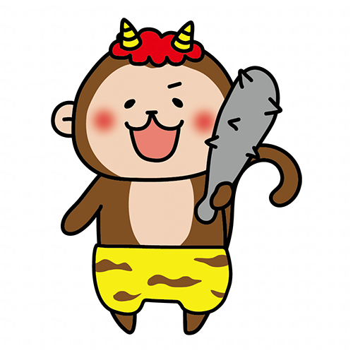 金棒を持っている赤鬼の格好をした猿