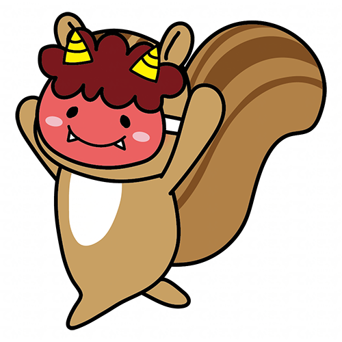 節分で鬼の面を付けて逃げるリス