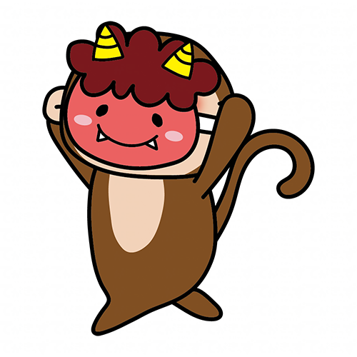 節分で鬼の面を付けて逃げる猿