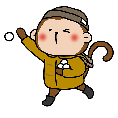 冬服を着て雪合戦をする猿