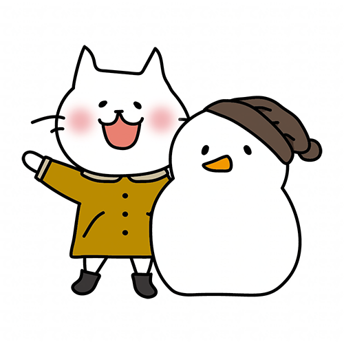 冬服の白い猫と雪だるま