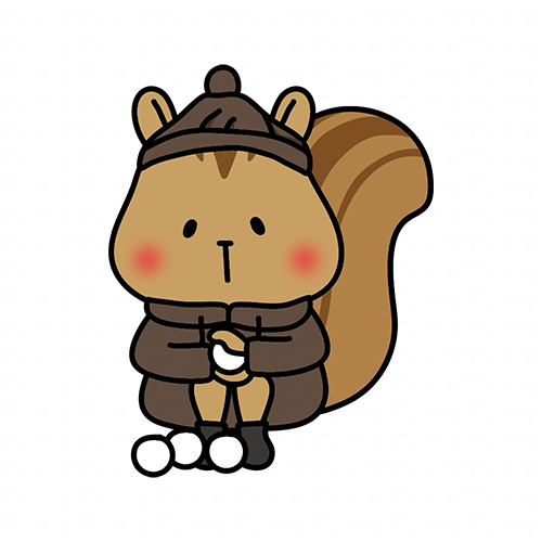冬服で雪合戦の雪玉をつくるリス