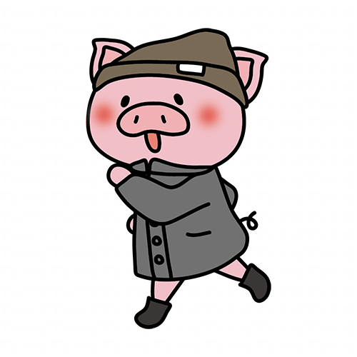 冬にニット帽をかぶって走っているぶた