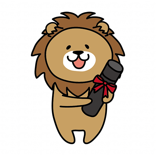 卒業証書を持っているライオン