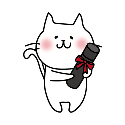 卒業証書を持っている白い猫