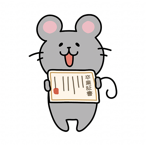 卒業証書を見せているネズミ
