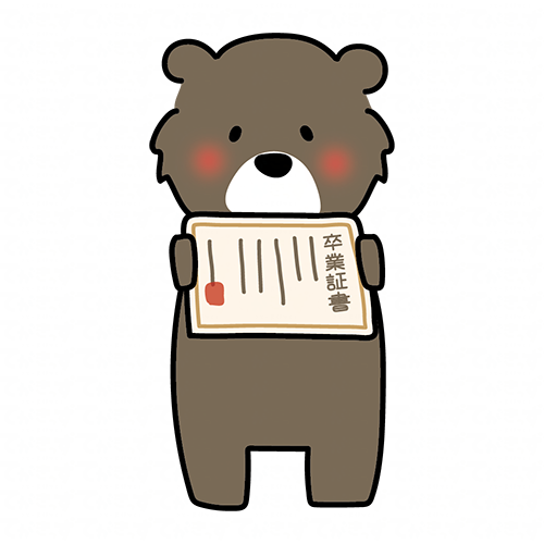 卒業証書を見せているクマ