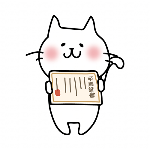 卒業証書を見せている白い猫