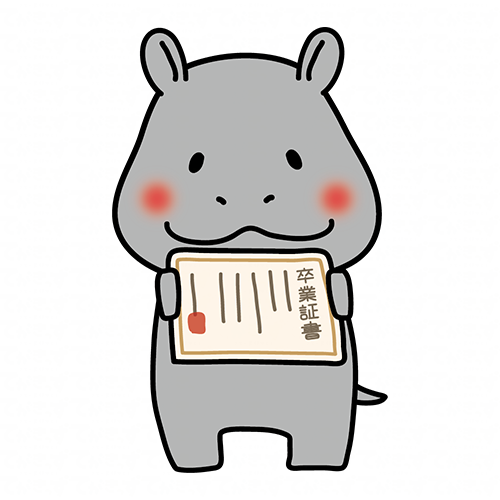 卒業証書を見せているカバ
