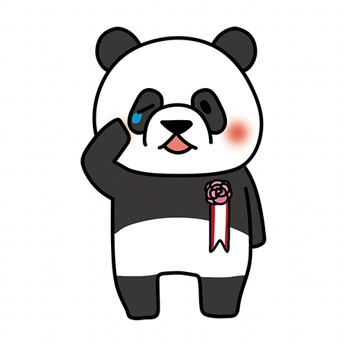 胸にコサージュを付けて泣いているパンダ