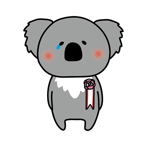 胸にコサージュを付けて泣いているコアラ