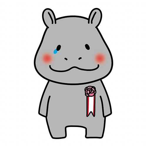 胸にコサージュを付けて泣いているカバ