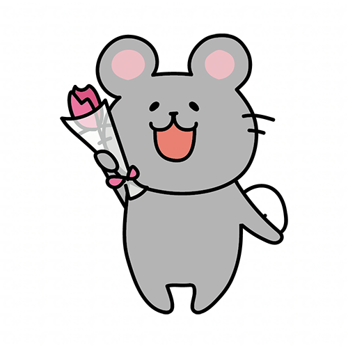一輪の花を持っているネズミ