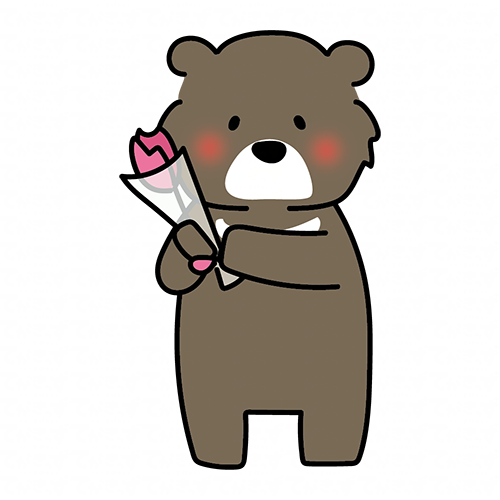 一輪の花を持っているクマ