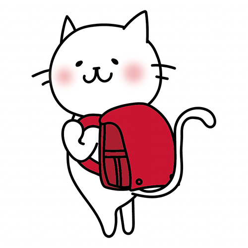 赤いランドセルを背負う白い猫