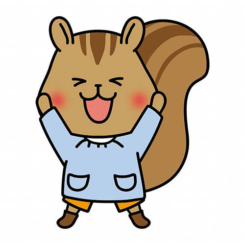 バンザイをしているスモックを着たリス