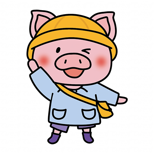 通園帽子と通園バッグをもっているぶた