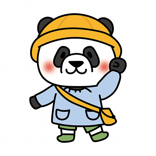 通園帽子と通園バッグを持っているパンダ