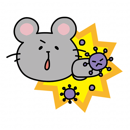 ウイルスをパンチするネズミ