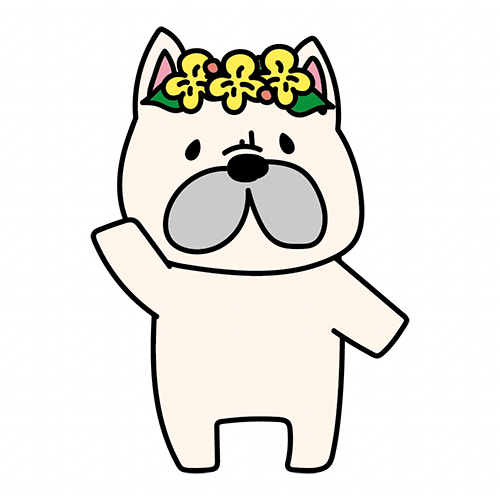 頭に花冠をつけたフレンチブルドッグ