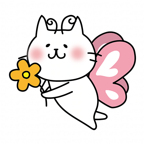 蝶々の格好をしてお花を運んでいる白い猫