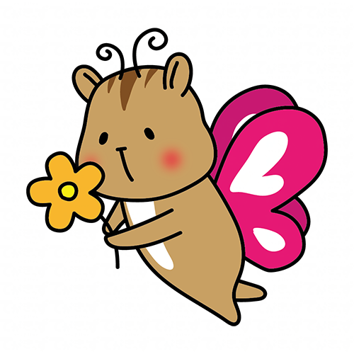 蝶々の格好をしてお花を運んでいるリス