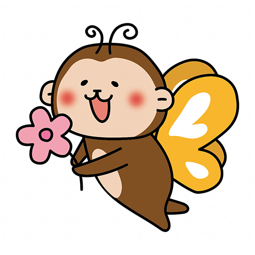 蝶々の格好をしてお花を運んでいる猿