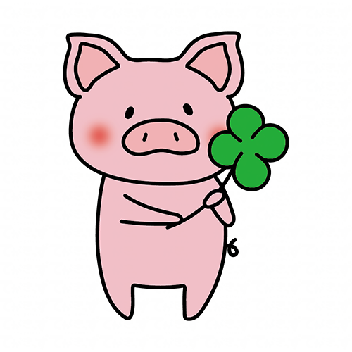 四つ葉のクローバーを持っているぶた
