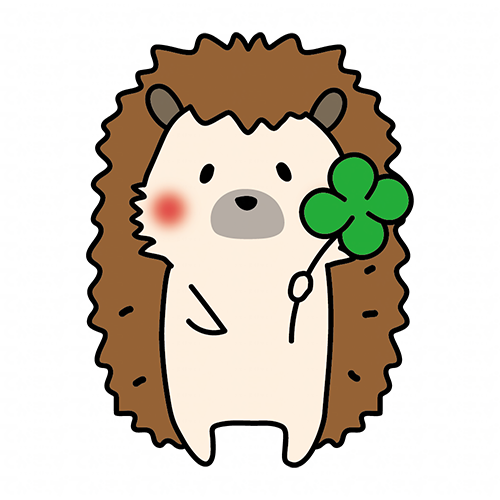四つ葉のクローバーを持っているハリネズミ