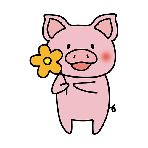 お花を持っているぶた