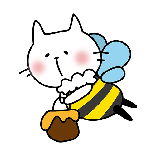 蜂蜜を運ぶミツバチの格好をした白い猫