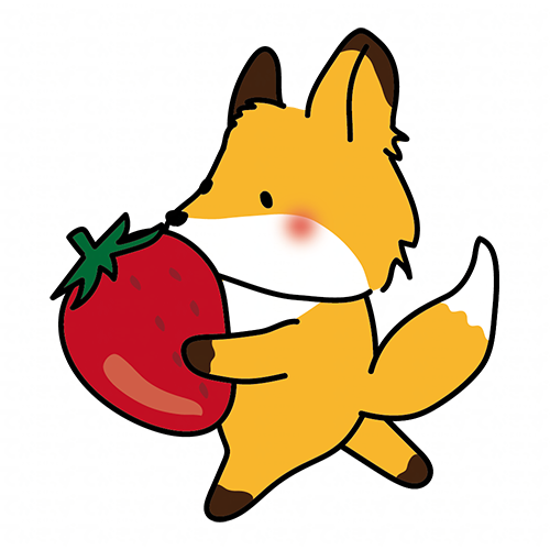 大きな苺を持っているキツネ